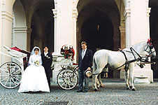 長谷川様 お元気ですか。ごぶさたいたしております。 過日は大変お世話になりました。 10月16日の式は大変お天気もよく、楽しい結婚式になりました。 当日馬車でのパレードに板野さんや菅原さんも同伴してもらい、またザルツブルグの町中の人から祝福してもらえました。みんな心から手を振ってくれてとても嬉しかったです。 テロの後で本当に行こうか迷いましたが、行ってよかったと思いました。 写真ははがきサイズに焼増ししましたので、お使い下さい。何かホームページに使うかもしれない?!とのことで彼も「雑誌に載るのかなぁー」と嬉こんでいました。 写真は差し上げますので、ご自由にお使いください。又、海外旅行の際は、お世話になるかと思いますのでよろしくお願いします。 大塚智恵子