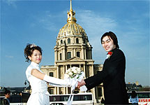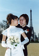 私達がパリに行った時期は雨が多く、事前に調べた天気予報でも滞在中はずっと雨。フォトツアーもお願いしていましたので非常に不安を感じていました。が、パリについてみると雨が降る気配なく滞在5日中3日目の夕方に少し降った程度で結婚式当日の4日目は太陽が眩しいほどの快晴でした。アメリカンチャーチはイメージしていたヨーロッパにある教会といった感じで、パリの風景に溶け込んでいる落ち着いた外観。中に入ると天井は高く、ステンドグラスから太陽の光が降り注ぎ、大きなパイプオルガンからは柔らかく美しい音色、私達はその空間に包まれゆっくりと歩を進めるたびに心が洗われ結婚の喜びを感じました。 |