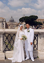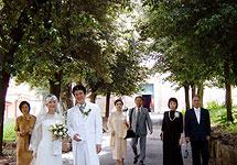 サンタマリアマーテル教会は、こちらの挙式日変更のせいで希望していた教会がだめになり、決めかねていた所へ紹介していただきましたが、まさに私の望んでいたイメージぴったりでした。緑がとても豊かな静かな所に建っていて、並木道を通って教会へ向かうんです。とても美しい教会でした。言い伝えなども教えてもらい、厳かな気持ちで式に臨むことができました。私たちはもちろんですが、参列者も皆、口をそろえて神父様の言葉が胸にきたね!やっぱり重みが違う!と感動していました。その後のミネルヴァでのランチパーティは時間を気にせず、とてもおいしい食事に会話もはずみすぎてしまい、気がつくと夜になっていましたっ 夢の様な1日でした。 |