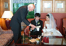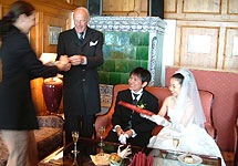 また、挙式パンフレット以上の内容にとても感激しました。例えば、シャンパン、挙式写真はポラロイドに素敵なアルバムがついていて、ネガ付き写真はたくさん、撮って頂きました。あと、現地の通訳さんも大変いい方で、本来はどうなのかわからないのですが、私たちが持参したデジカメで、挙式風景もたくさん撮ってくれました。 |