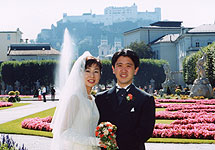 思えば、最初に長谷川さんにご相談した時は挙式を4ヶ月後に考えながら「ヨーロッパでの挙式が良いな」という程度しか決まっておらず何から進めていけばよいか、わからない状態でした。けれど、現地の事情に精通されている長谷川さんの話を聞き質問に答えていくうちに、あっという間に私たちの希望通りの挙式プランを作って頂く事ができました。長谷川さんのアドバイス通り、私たちは個人ツアーを作ってもらい挙式に列席する両親達は別のツアーに参加するよう手配して頂いたので皆が納得し、思い出に残る結婚式になったようです。 挙式を行なった ザルツブルグのミラベル宮殿は写真やビデオを拝見し、想像していたよりもとても尊厳であり、素敵な宮殿でした。天井も高く、大きな窓から入る日の光の中での挙式はとても気持ちがよかったです。また、ミラベル庭園も色鮮やかな花々が咲き乱れ噴水と空の青さがまぶしいくらいでした。 |