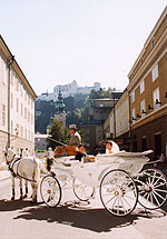 私達は、9月初旬という最高の季節に、ミラベル宮殿での息子の結婚式に参列しました。天気予報に反したザルツブルグの青い空、宮殿を彩る庭園の花をバックにした結婚式は素晴らしいものでした。 私達はインスブルックを出発点に、ウイーンで締めくくるオーストリア横断のJTBパックツアーで観光を楽しみつつ、途中で結婚式に参列する日程でした。メンバーは、お嫁さんのご両親、娘とその息子(つまり、私達の孫)、そして私達夫婦の総勢6人でした。結婚式そのものの感想は息子夫婦に任せて、今回の「結婚式&オーストリア旅行」での最高の副産物をしゃべらせて頂きます。第一は、初めてお会いして数ヶ月に過ぎないお嫁さんのご両親とすっかり打ち解け、古い親戚以上の間柄になれたことです。孫などは、自分のおじいちゃん、おばあちゃんにしてしまいました。第二は、これは偶然なのですが、ウイーンの初日に孫が6歳の誕生日を迎え、お嫁さんのご両親も交えて誕生祝が出来たことです。「モーツアルトがザルツブルグからウイーンに出てきて、王宮でピアノの初演奏をしたのが6歳だったね。」などと、皆で冗談をいいながら祝ってやりました。 出かけるまではいろいろ不安もありましたが、リージェンシー・グループの長谷川さんの巧リードで、全て順調、事故もなく、楽しく、素晴らしい「結婚式&オーストリア旅行」ができました。今も、その思い出を反芻しては、懐かしみ楽しんでいます。有難うございました。 (新郎の父 松島忠雄) |