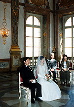 この度は大変お世話になりました。おかげさまで宮殿で、華麗で夢のような結婚式を挙げる事ができました。私たちは両家(新郎新婦を除く)でオーストリアツアーに参加し、そのうちの一日をあて、挙式に参列しました。旅行中行動をともにすることによりお互いの家族がしっかりと結びつき和やかな人間関係の中で、式に参列できました。結婚式の感動と共に宮殿や教会、家の窓にあふれんばかりの花々等オーストリアの美しい思い出もいっぱい残りました。ありがとうございました。 (新婦の母 有福久恵) |