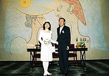 コーディネーターのかたと陽気なドライバーと渋いカメラマンがお迎えに来てくれて、市庁舎に向かう途中も、ウェディングだと気づいた街の人たちが、”ブラボー”って手を振ってくれるのが、いかにも海外挙式なんだな〜って、気分を盛り上げてくれました。 |
