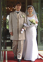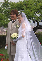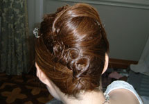 挙式はイメージどおりの厳かなもので大変感激いたしました。(特に最後にパイプオルガンで結婚行進曲が始まったとき、じいーんときました!)ただ、個人的にはドレス用の下着がすごくきつくて、式に行く途中から式の後までずっと気分が悪かった(あとそのせいでウェディングランチを少ししか食べられなかった)のが残念だったのですが・・・でもそれも今思うと楽しい思い出です。長谷川さんのおっしゃっていたとおり、メイクはナチュラルに仕上げていただき満足です。ヘアーは「夜会巻き」にとお願いしただけだったのですが、写真をとって後で見たらすごく芸術的な仕上がりで、本当にびっくりしました。 |