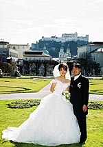 ザルツブルグの街はこじんまりとした歴史ある街並ですごく良いところですね。挙式当日は3月なのに気温20度はあるのではと言うくらいの快晴で、色々と寒さ対策も考えていたのですが全く無用のものとなってしまいました。 |