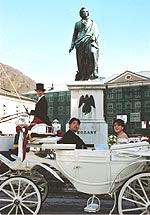 街の方は皆さん親切で行く先々で手を振って祝福してくれました。遊覧途中でロシアの修学旅行生(言葉からして多分そうだと思います)に冷やかされる一幕もありましたが・・・。 |