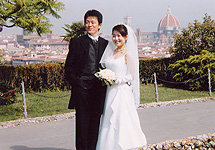 ホテルからミケランジェロ広場でフォトツアー。ここではカメラマンの方の片言の日本語がおかしくて、「にっこり」というよりは「大笑い」。写真はどうなっているかと心配しましたが、自然な表情・美しい景色、すばらしい写真をたくさんとったいただけました。あの景色は本当に素晴らしいです。素敵過ぎて、本当にここに写ってるのは私達??ポストカードかしら?と思うくらいです。市役所で手続きをした後に教会に向かいましたが、外を歩いているといろんな方が、『おめでとう』と声をかけてくださいました。気さくなイタリア人ならではですよね。嬉しかったです。こんなにたくさんの方に祝福してもらえるなんて、普通に式をしたらなかなか無いのではないでしょうか? |