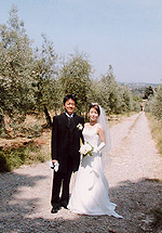 イル・パラジオ城までの道のりも、オリーブ畑・ブドウ畑・入り口のイトスギ。お天気も良くてきれいな景色に感動してしまいました。到着したお城は中庭もすごく素敵な雰囲気で、いつまでもそこにいたいという気持ちになりました。挙式はさすがに多少緊張しましたが、お城自体が歴史のある建物のせいか、中に入ると自然と気持ちが落ちつく気がしました。教会の中も美しい装飾が印象的でこれからの2人のスタートとして心に残る物でした。現地スタッフの方、サンカッシアーノ市の職員の方、カメラマンの方、皆さんとても親切かつ楽しい方々で、2人だけの挙式だったのですが、1日中本当に楽しく過ごすことができました。心から感謝しています。 |