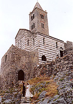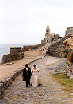 遅い時間ではなかったのですが、もう辺りは真っ暗でなかなかバス停が見つかりません。「どうしよう・・・。誰かに聞くしかない。」と思っていたら、たまたま通りかかった少年に片言のイタリア語で「ポルトヴェーネレ行きのバス停教えて。」と言ったら、少年は丁寧に説明してくれたのですが、私達がイタリア語を理解出来ないでいたら、「バス停まで一緒に行こう。」と言ってくれて、とても親切な少年でした。「ポルトヴェーネレはステキな所だよ。」って少年が(多分)言ったので、「私達、ポルトヴェーネレで挙式したんだよ。」と話したり、短い時間でしたけど、地元の人との交流が楽しかったです。 |