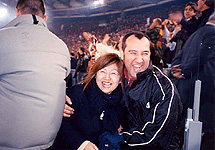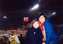 試合後に私達が記念撮影してたら、ローマの勝利で盛り上がってた人が乱入。一緒に記念撮影しました。(笑) |