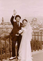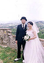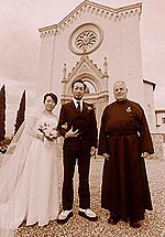 いざ教会へ!と、その前にミケランジェロ広場での写真撮影。撮影前の車の中では、観光客に見られて恥ずかしいからイヤだなぁ〜なんて思っていたけど、車を降りたらフィレンツェの街が一望でき、恥ずかしさなんかどこかに飛んで行ってしまいました。 |