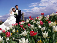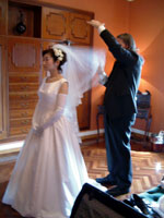 勿論、挙式前のメイクさん、美容師さん、通訳の岡本さん。全て”はなまる”でした。特に美容師さんには感動でした。結えない長さの短い髪を、綺麗にアップにまとめ上げてもらいました。世界一の美しい花嫁さんの出来上がりです。満足度は、200%です。 |