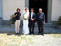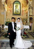 この度は色々お世話になりありがとうございました。なんとか無事式も旅行も終わりました。今回の旅行ではジロ・デ・イタリアを観戦することと、挙式が主な目的でしたが、アシスタントの福田さんのご尽力で「最後の晩餐」を見ることができたり、他にもすばらしい経験ができました。ジロ・デ・イタリアはもう本当にバッチリ観戦できました。主人も大満足のようでした。当日は朝から大張り切りで、その甲斐あってか、いいポジションで見ることができました。私もあまり知識がなかったのですが、それでも見ていて楽しかったです。 旅行中はずっと晴天続きでしかも連日30度以上の暑い日が続き、さすがに挙式当日は教会に到着するまでにぐったりしてしまいました。到着後は元気でしたけど。挙式は滞りなく行われたと思います。ヘアメイクは後から考えるとやはりメイクカルテよりは濃いお化粧になってしまっていたかもしれません。あとで写真を見た母が「かなり濃い」と言ってたもので。私は舞い上がって(?)よくわからなくなってました。(笑) |