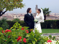 フォトツアーも当日の朝はどしゃ降りの雨だったのですが、途中から雨も止み、ミケランジェロ広場での撮影もできました。シニョーリア広場では世界各国から来ている観光客の人たちから祝福の言葉をいただきどこにカメラマンがいるのかわからなかったぐらいです。式が終わって二人でもう一度ヴェッキオ宮殿付近まで行きました。ドゥオモに登り夕焼けのフィレンツェの街をずっと眺めていました。 |
