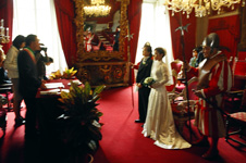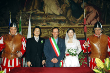 結婚をするならひっそりと海外で挙式をしたいと思っていました。インターネットで調べていくうちにヴェッキオ宮殿のサラロッサ(深紅の間)に惹かれ、フィレンツェという街が大好きだったこと、そして日本の戸籍やフィレンツェ市の婚姻台帳に私たちの記録が残ることから絶対ここで式を挙げたい!とヴェッキオ宮殿での挙式に決めました。もうこの場所しか目に入らなかったのです(^^ゞ