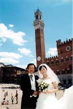 挙式前日、シエナに到着し初めてカンポ広場に足を踏み入れた時、景色の素晴らしさにとっても感動してしまいました。そして、マンジャの塔に上り、シエナ色に染まる素晴らしい街並みを一望しつつ、この地で挙式を出来る喜びを噛み締めました。