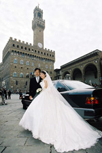 まず初めに、ポンテヴェッキオ、ドゥオモ界隈、ヴェッキオ宮殿の前で写真撮影をしました。その際、観光バスに乗っている人たちに祝福を受けたりどこの国のテレビかわかりませんが、テレビのインタビューをうけたりしました。