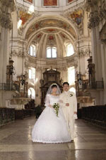 ザルツブルクでの挙式後は、ウィーン、ブタペストを旅行しました。ウィーンではオペラを観に行ったり、コンサートを聴きに行ったりと、音楽の街を堪能しました。ブタペストで滞在したホテルは、王宮の目の前にあるホテルで、夜、お部屋から見えた王宮のライトアップは、とってもロマンチックでした。 渡部功之&弥栄子 |