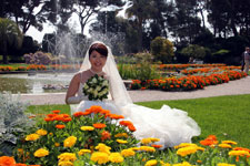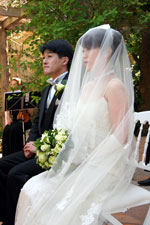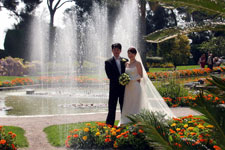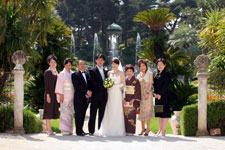 挙式後は、カメラマンの方と庭園内を散策しながら写真撮影を行いました。 その際は、一般の来場者の方からも祝福を受け、一緒に写真を撮ったりもしました。また、両家の母親が着物を着ていたのでそちらにも人が集まっていました。(笑) |