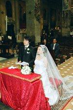 ![]() そして、サンタ・レーナ教会へ。こじんまりした教会だと思っていたのですが、行ってみると広い! そして素敵!! 歴史を感じさせる雰囲気にここで式を挙げられる幸せを感じました。信者の方が普通にお祈りをしている中、パイプオルガンが鳴り響き入場。やっぱり本物の音は違いますね〜。歩いている後から、座っていた信者の方々全員が立ち上がって祝福してくれたのには感動しました。日本では絶対することのできない本物の教会ならではの式。イタリアで、そしてこのサンタ・レーナ教会で挙式ができたことは、私たちにとって掛け替えのない宝物となりました! 式が終わると、フォトツアーの再開。ドゥオモ前での撮影のため、教会からドゥオモまで歩きました。ウェディングドレス姿で街を歩けるとは! なんだかとても嬉しかったです。ドゥオモをバックに撮った写真も素敵なものになりました。 その後はヴィッラ・コーラに戻りウェディングディナー。「まさかこの部屋でじゃないよね?」と話していた、すっっごく豪華な部屋でまさかのディナー。まるで王家の晩餐会のよう…。美味しすぎる食事と素晴らしい部屋。最高の気分を味わえました♪ |