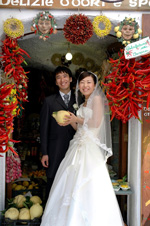 そして、この素晴らしい挙式、ハネムーンで色々とお世話になった多くの方々と、それを実現する為に、なんと1年近くもお付き合い頂いたサルヴァトーレ山田さんに本当に感謝しています。計60通にもなるメールに、翌日には必ずお返事を頂き、いつのまにかメールをみるのが楽しみにまでなっていました(笑) 色々と難解な注文にも丁寧に答えていただき、関西・関東の距離を全く感ないほどでした。 しかも、挙式後の披露宴の相談まで・・お世話をかけました!頂いた、全ての街でのオススメ料理(秘)メモはもちろん大活躍で、今後も大切にとっておきますね。 そして、また必ず南イタリアに訪れたいと思いますので、今後とも夫婦揃ってどうぞよろしくお願いします。 長くなりましたが、また、いつかお会いできる日を楽しみにしています。 京都に来られる際は、約束しました通り、ぜひ、一声かけてくださいね。2人で案内させて頂きます! 床鍋 孝徳&明子 |