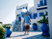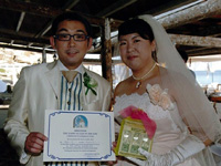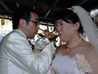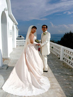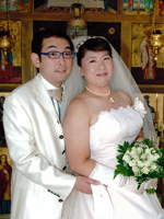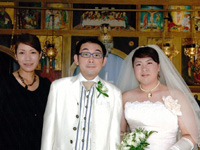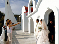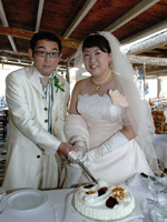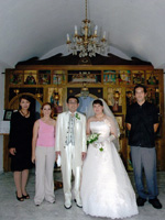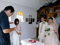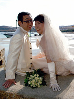 挙式当日は、お昼ごろ、数ヶ月ぶりの雨が降って、どうなることかと思いましたが、準備して、ソスティス教会へ出発するころには、 晴れてきたので、ほっとしました。式も無事に終わって、次の日は、ビーチで、のんびりと幸せな時間を過ごすことができました。 エーゲ海は、想像以上に透きとおった青で、本当に感動しました。 |