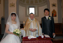翌日の午前中に挙式のため、数時間しか睡眠がとれず、どうなることかと思いましたが、周りのスタッフの方々に見守られ、とても心温まる式を行うことができました。サンタ・コロンナ教会は、オリーブ畑に囲まれたとてもアットホームな教会で、二人っきりで式をした私達にはぴったりでした。(余談ですがカメラマンのアンドレアさんも、私達と同じ場所でサッカーの試合を観戦していたらしく、ローマからフィレンツェまでバスで直行したそうです) 行く先々で貴社のアシスタントさんに優しくしていただき、最高に良い思い出でした。宿泊したホテルも最高でした。 フィレンツェのVやヴェネツィアのDではシャンパンのプレゼントがあり、とても嬉しかったです。 |