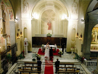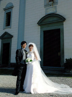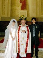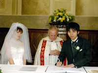 ヴェネツィアからフィレンツェへ移動し、いよいよ挙式の準備!親たちには、フィレンツェでの観光を楽しんでもらい、私たちは、前日講座へ!教会へつくとそこには、私服の普通のおじさんが・・・机の上には、チョコレート(ジャンデューヤ)のケースが。でもいろいろお話を聞いてると、本物だーー!!と。二人でありがたいお言葉をいただきました。 そして教会の紹介をしていただいたところ、なんと一部、修復中(さすがに当日はかたづいていましたけど)! そして日本から持っていったお土産(とらやの最中)をお渡しし、前日講座は終了。本当は、ドラ焼きをもっていきたかったのですが、賞味期限の問題で、最中に。でも後日聞いたら喜んでもらえたようです。どうやら甘い物好きのようです(笑)!