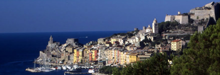 ・・・そもそもまず、ポルトベ−ネレで挙式をあげようと思った理由は、いくつかイタリア内での挙式場所を見せていただいたのですが、断崖絶壁にそびえ立つ教会に見惚れてしまって・・・しかも絵画のような町並みとその町を取り囲む広い海・・・すべて私が頭に描いていたヨーロッパの町並みでした。その場所にもうすぐ着くんだ!と思ったら、寝不足や、出発までの忙しさなんて飛んでいってしまいました。一番近い鉄道駅のラスペツィアからポルトベ−ネレまでのタクシ−内でも、だんだん気持ちが高まってゆき現地に到着した時はうれしくて仕方ありませんでした。 グランドホテルポルトベ−ネレは、一見こじんまりして見えるのですが、私たちが2泊したハネム−ンスイ−トという部屋はとても広くて居心地のいい場所でした。なんといっても、メインル−ムから続く広いバルコニ−、ここから港や可愛い町並みが一望出来て、時間を忘れてほんとにのんびりと過ごす事が出来ました。 |