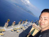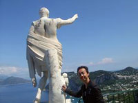 6日目、楽しみな朝食へ。断崖に建つ街並を眺めながらたっぷり食べちゃいましたぁっ!!(~ー~ )ルン♪ ホテルを出ると『アナタハ ニホンジンデスカ。』と久しぶりの日本語が…煤i゜о゜) 振り向くとセレブなイタリアンおじいさんが。(^…^)/~ 『ワタシハ ナポリジンデス。ヴェスヴィオ、クマモトサクラジマハカザン。ワタシノニホンゴドウデシタカ。サヨウナラ マタアイマショウ。』と一方的に喋り(笑)街の方へ去っていきました。 これには2人とも大爆笑!o(*>▽<)oo(>▽<*)o☆ そして船でカプリ島へ。 |