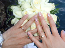 今日こんなキレイな海の近くのステキな教会で挙式してると思うと幸せいっぱいっ!!(>∀<)て思ってたらもう 指輪の交換。永遠の愛を誓い、(*^)(^*)★ちゅっ★(パイプオルガンの)『主よ、人の望みの喜びよ』を 聞きながら神父様から祝福のお言葉を頂いて証明書にサインをしました。退場はワーグナーの結婚行進曲で。 心が安らぎます。☆☆☆ヽ( ~▽~)人(~∇~ )/ ☆☆☆教会から出て仕上げのフォトを終えホテルへ戻りました。 |