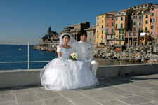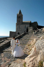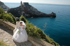 90歳を過ぎた神父様にもあたたかい言葉で祝福していただき、本当に結婚したんだなぁと感無量。一目ぼれした教会も、街並も、人も、かもめも、(・・・ついでに嫁さんも)、すべてが素敵で、ポルトヴェーネレという小さな町で挙式できたことは一生の思い出となりました。 |