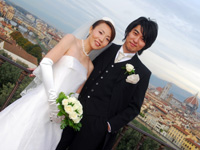挙式後にヴェッキオ宮殿前などで写真撮影をしたのですが、観光客の方々に祝福の言葉をいただき、写真を撮られまくりました。