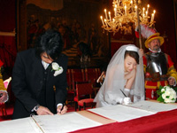 結婚の記念の証書をもらったのですが、新郎の名前が間違っていて、その場で作り直してもらいました(笑。いい加減なイタリアらしさが出ていて笑えました。出席した両親も、そのテキトーさに緊張がほぐれて、助かったようです。挙式を担当された職員の方が、数少ない女性だったのもラッキーでした。日本では経験できない、とても思い出深い挙式でした。