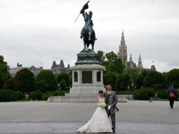 2007年9月8日に私たちはウィーンのシェーンブルン宮殿で結婚式を挙げました。とても素晴らしい式になり、リージェンシー・グループの藤本さんにはとても感謝しています。ここではこれからウィーンで式を挙げる人の参考になればと思い、私たちの挙式と旅行を紹介させて頂きます。 最初にリージェンシー・グループを知ったのはこのホームページでした。海外での挙式を漠然と考えていた時に、シェーンブルン宮殿で挙式を挙げたカップルのウェディングレポートを読みました。そのおかげでシェーンブルン宮殿の挙式をする事に踏み切れたような気がしています。 |