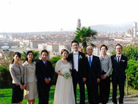 みんなにたくさんお祝いの言葉をもらって、「本当にフィレンツェで結婚式をあげたんだな〜」と実感しとても幸せな気持ちになりました。(「パンデモーニオ」は、私が留学中に大変お世話になった思い出のお店です。料理ももちろんおいしいのですが、家族経営ならではの温かさでいつも迎えてくれるので、フィレンツェに行く度、必ず訪れることにしています。オススメです!!)