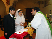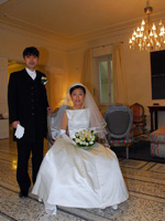 調子にのってその前でも写真を撮っていただいたのですが、うっかりヴェールにろうそくの火がつきそうになってしまい、撮影隊から一言「それが燃えたら、イタリアの爆笑ハプニング番組に投稿しちゃうぞ」。
