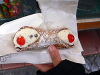 カンノーリ:ローマにてシチリアのお菓子で、映画のゴッドファーザー3のラストでマフィアの親分がおいしそうに食べていたアレ。皮は揚げてあるのでクリスピー。中は軽いさわやかなチーズのクリームです。