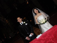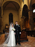 フォトツアーではホテルのエントランスを共有しているMichelin三ツ星レストラン“Enoteca Pinchiorri”の中庭があまりにもきれいだったので、そこをお借りして写真撮影をしてもよいかとダメもとですが、お願いしました。すると、なんとまさかのO.K.サイン!更にはオーナーの方からお菓子のプレゼントまで頂いてとても感激しました。 そして念願のSanta Lena教会挙式。 今まで経験したことのない空気、天井の高さ、まるで時間が止まったような空間でした。そこにパイプオルガンの音が鳴り響いたとき、涙で目がいっぱいになりました。 帰国後、ご列席下さった大山さまから教えて頂いたことですが、教会の一番後ろの席で、地元の方々が神父さまといっしょに、私たちのためにお祈りして下さっていたそうです。大山さまからのこのご連絡で、私たちは帰国してからも式の感動が続きました。 |