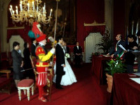 新婦は、数回イタリアへの渡航経験があるものの、新郎にとっては初めてのイタリア旅行。 最初にリージェンシーさんを訪問した時は、挙式はイタリアで(新婦がイタリア好きなので)という程度しか決めていませんでした。 しかし、担当していただいた山田さんの熱意溢れるお話を聞かせていただくうちに心は既に決まりつつありました。 決定的だったのは、ぼんやりと考えていた挙式日(2/6)が、ちょうどヴェッキオ宮殿におけるフォーマル挙式可能日の木曜日であったと言う事です。 最初に訪問した際には、挙式日も特に決まっておらず、とりあえず話だけでも聞いてみようと思っていたのですが、山田さんとの出会いで歯車が動き始めました。