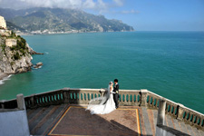 アマルフィ特産のレモンや陶器、お菓子など、かわいいお店があちらこちらに並んでおり、お土産を選ぶのも一苦労(笑)。その日はカプチーノ片手に海岸のベンチで、翌日の挙式のイメージを膨らませながら昼下がりを満喫しました。