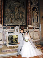 サンタ・レーナ教会はFirenze市内で最も古い教会のひとつ、その荘厳かつ歴史溢れる内装、色鮮やかなフレスコ画やステンドグラスの中での挙式は想像以上の素晴らしさに感慨無量で、夢を実現する事ができました。