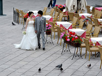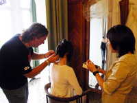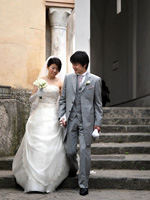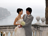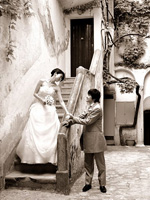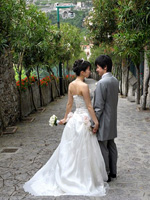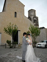 挙式当日は、朝からホテルに花屋さんからかわいらしいブーケが届き、陽気な美容師さんがあっという間に髪を結い上げてくれました。現地では髪型はうまくいくのかな・・・と心配もしていましたが、そのような心配は無用でした。楽しみにしていたフォトツアーは、「さすがプロ」という感じでした。ラヴェッロの風景と一緒になって、素敵な写真をたくさんとってもらうことができました。その写真をイタリア滞在中に届けてくださったのには、驚きでした。おかげで、帰国後の結婚披露パーティでは、その写真をスライドショーにして、みなさんにお見せすることができました。