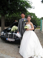 ウェディングカーの前で