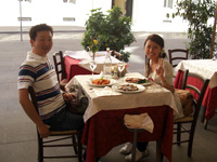 料理もどこの街でも美味しく、特に、藤本さんのお勧めレストランリストに載っていたフィレンツェのお店のビステッカ・アッラ・フィオレンティーナとリゾットはチョー美味でした♪そこのお店の方もとっても美人で♪日本人シェフらしい方もいましたよ♪ベネチアでは、通訳としてお世話をしてくださった方が教えてくれた、魚のラザニアがあるお店の料理もチョー美味♪席に着く前にワインをいただき、『お客様は神様〜』と日本語で叫んでいて、とっても陽気で楽しいお店でした♪このレストランは、後で藤本さんのお勧めレストランリストを見てみたら載っていて!さすが、ダブルでオススメするだけあるな〜♪と納得♪感心♪日本語を話せるイタリア人に会うとそれだけでホッとしたし、とってもおもしろい人ばかりでした♪
