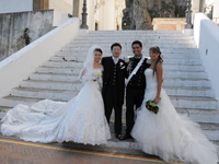 カスティーリア教会に着いたら、ウェディングドレスを着たビューティフォーガールとイケメンを発見!フォトツアー最中だったようで、記念に一緒に写真を撮らせてもらいました(^_^)