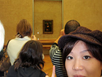 最終日はヴェルサイユ宮殿へ。中はすごくスリが多いとのことでしたが、私達は幸いにもお会いすることはありませんでした。一番人気(ぽかった)マリーアントワネットのベッドは布団の生地が傷むからと、その場でのカメラフラッシュ禁止。でも、ものすごいフラッシュを浴びてました(笑)さすが外国、大胆ですね〜。午後からは、ルーブル美術館へ。館内カメラOKでビックリ。おかげでモナリザとコラボレイトに成功しました。そして凱旋門、エッフェル塔へ。エッフェル塔は東京タワーみたいに室内ではない(最上階の一部除く)ので、ものすごい風にさらされ瀕死の状態でした。11月は危険ですね。でも夜景は綺麗でした。 |