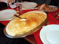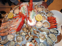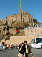 フランス到着!めちゃくちゃ寒い!!イタリアとの寒暖の差にはご注意を。アシスタントの方にこの時期はカキがおいしいと伺ったので、早速お勧めのお店へ。『二人前お願いします!』みたいな?ことをフランス語で書いてもらってその紙を渡してワクワクしながら待ちました。と!なんだかものすごい量のシーフードがご登場!驚きましたが、しっかり御完食。味は最高でした。ここはすごくお勧めです!(場所はサントノレ通り沿いでマルロー広場前あたりの青い屋根の店です。外でたくさんのカキを剥いています。)翌日は、モン・サン・ミッシェルへ出発。バスで片道四時間。丸一日かかりました。名物のオムレツ・・評判通りの味ですね。卵というより泡を食べている感じでした・・・。 |
