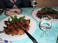 ミラノを満喫し、ユーロスターを利用し、フィレンツェへ!着いてすぐ、アシスタントの方に『藤本さんお勧めレストランリスト』のレストランを予約していただいて、みんなで夕飯を食べに行きました。店員の態度は正直・・・(アシスタントの方曰く、最初はビックリするけど慣れるよ〜とのこと)ですが、味は最高!調子にのって噂のTボーンステーキを三つ頼んでしまってあまりのボリュームに皆無言・・。でもおいしかったですよ! |